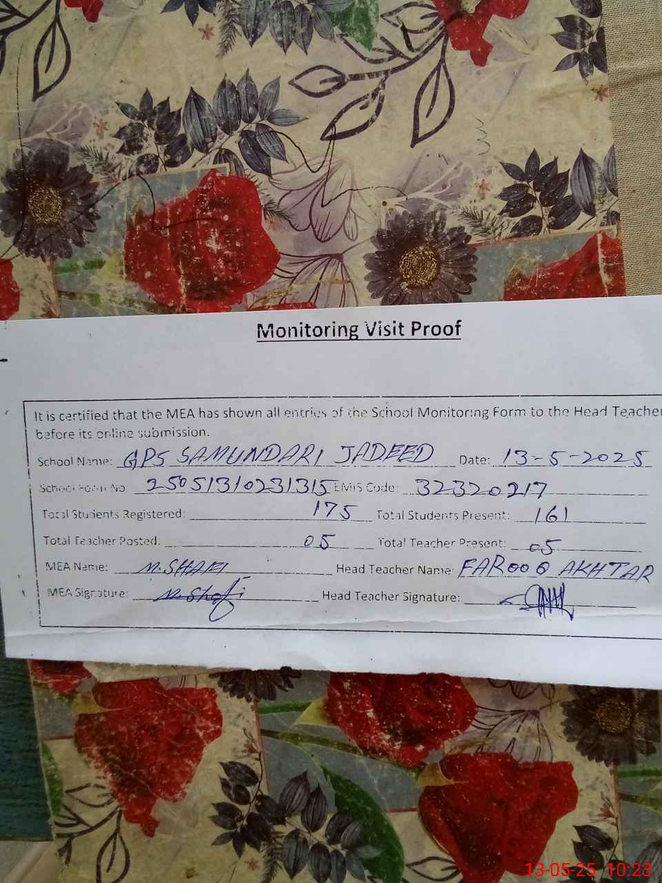 | EMIS Code: 32320217 | Name of School: GPS SAMUNDARY JADEED | |||