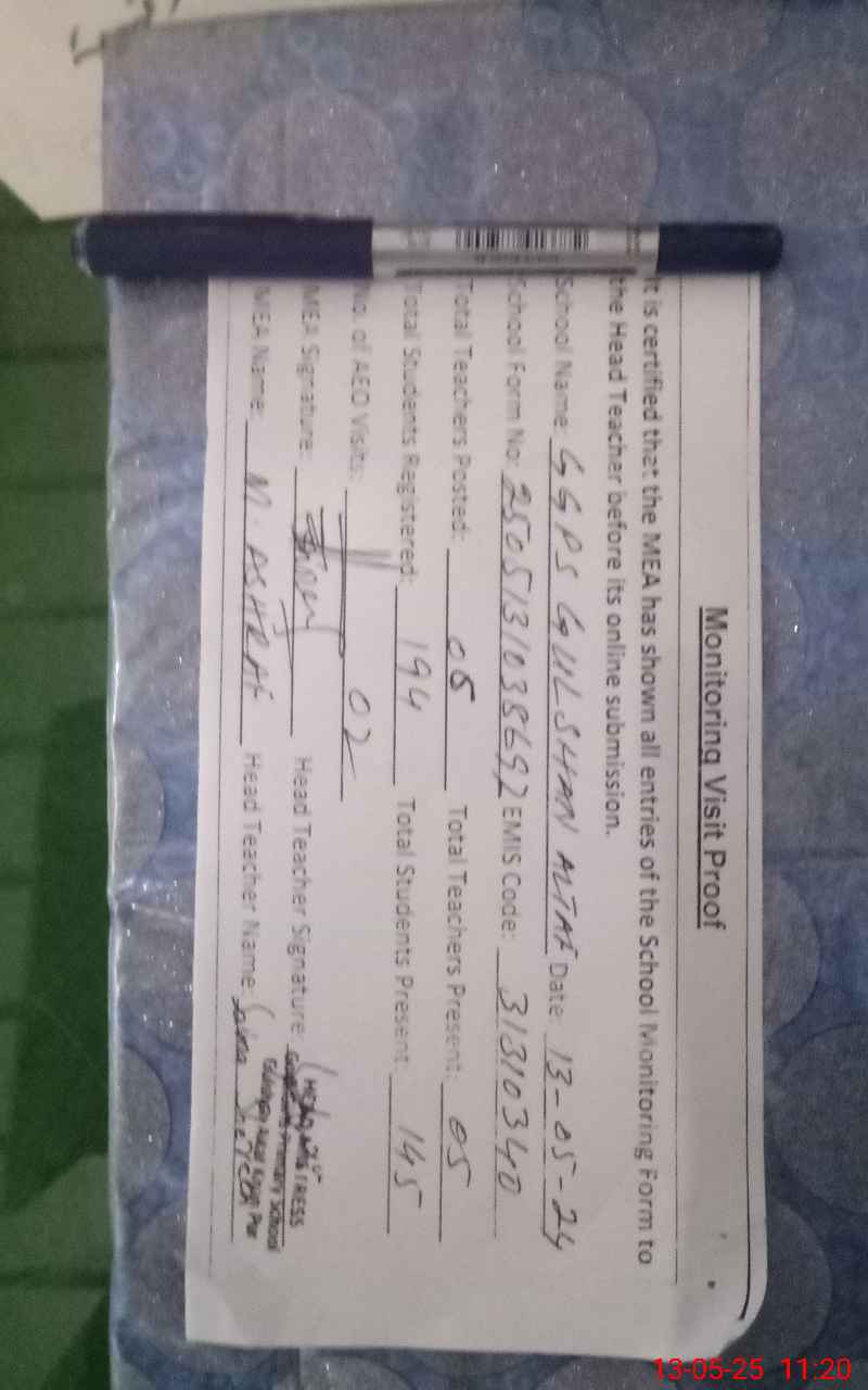 | EMIS Code: 31310340 | Name of School: GGPS GULSHAN ALTAF IRRIGATION COLONY | |||