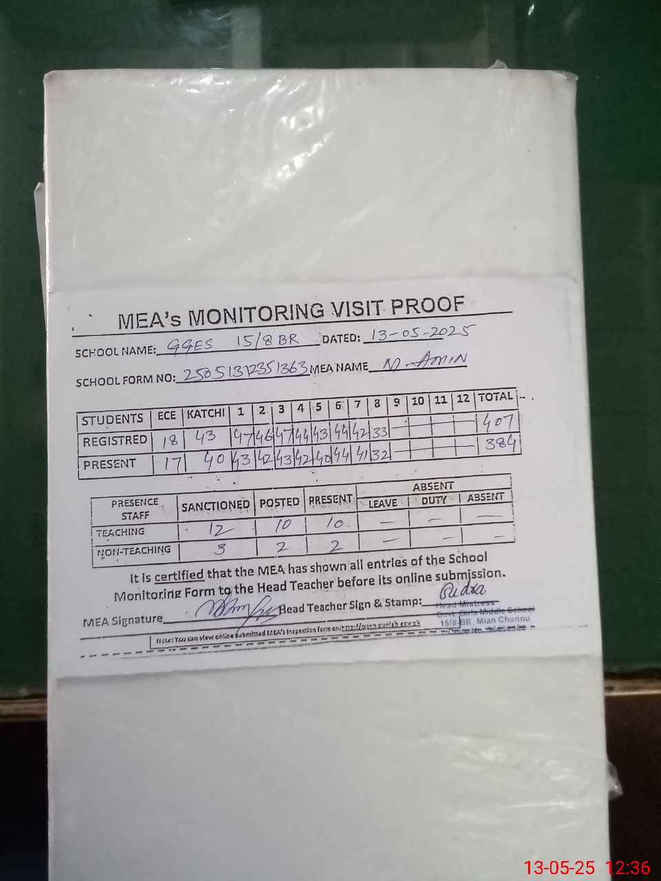 | EMIS Code: 36430362 | Name of School: GGES 15/8-BR, TULAMBA | |||