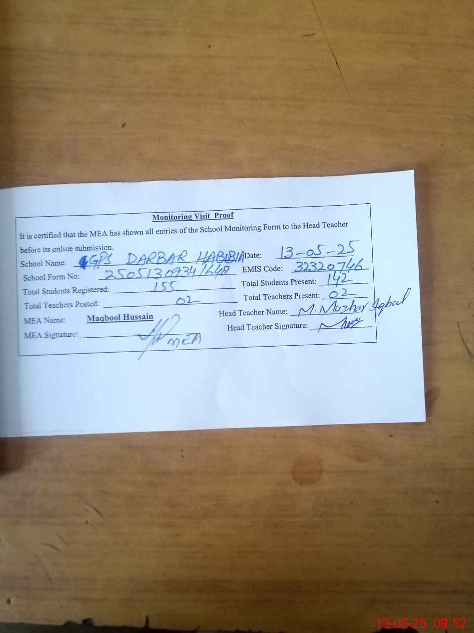 | EMIS Code: 32320746 | Name of School: GPS DARBAR HABEBIA | |||