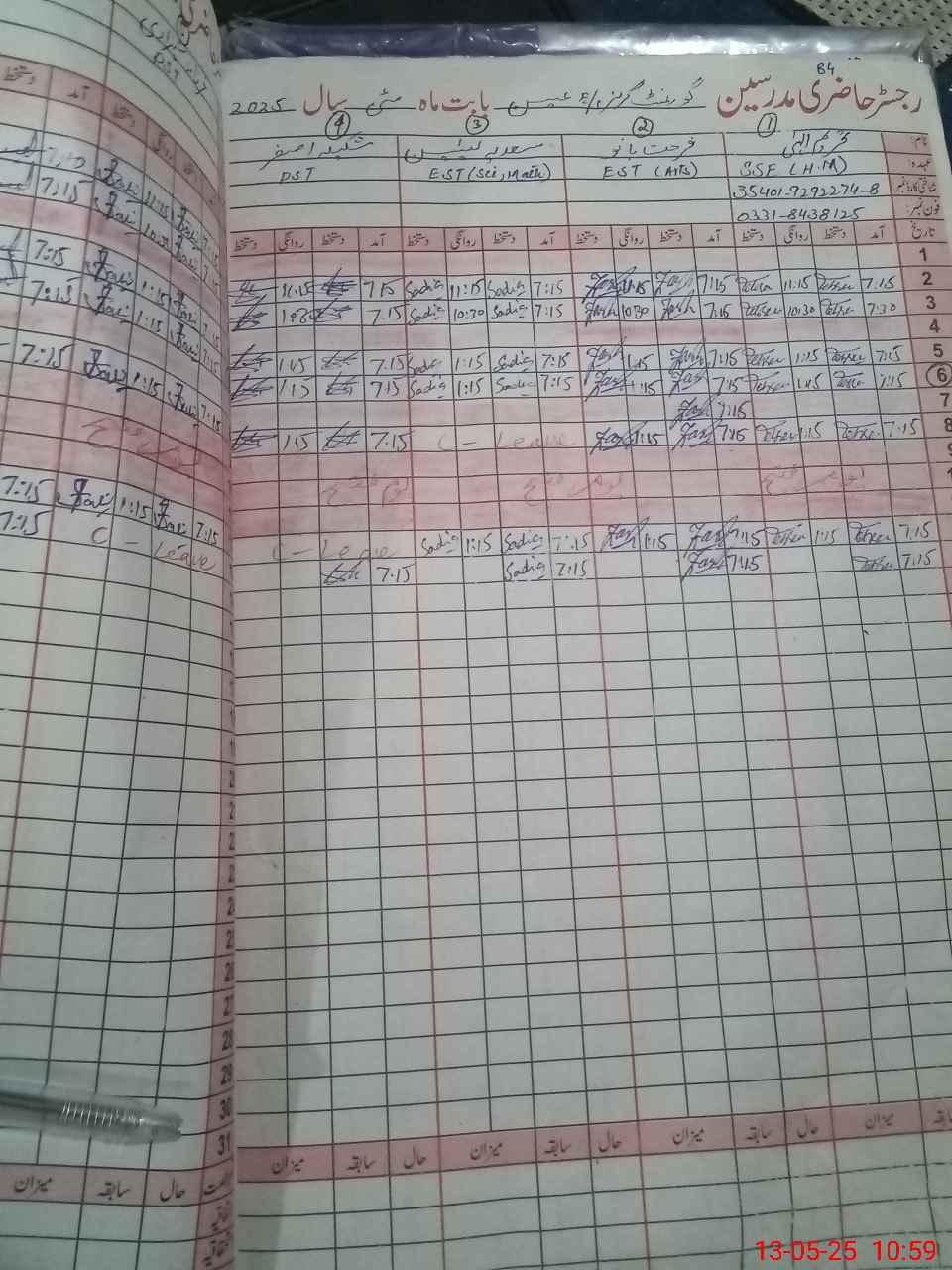 | CNIC | Full Name | Designation | R/C | Absence During Last Calender Month |