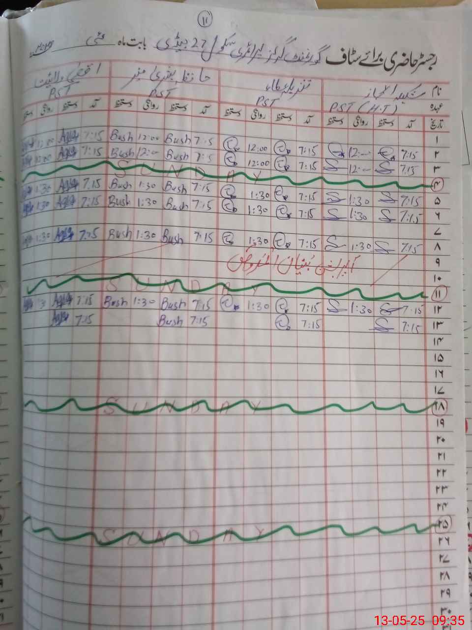 | CNIC | Full Name | Designation | R/C | Absence During Last Calender Month |