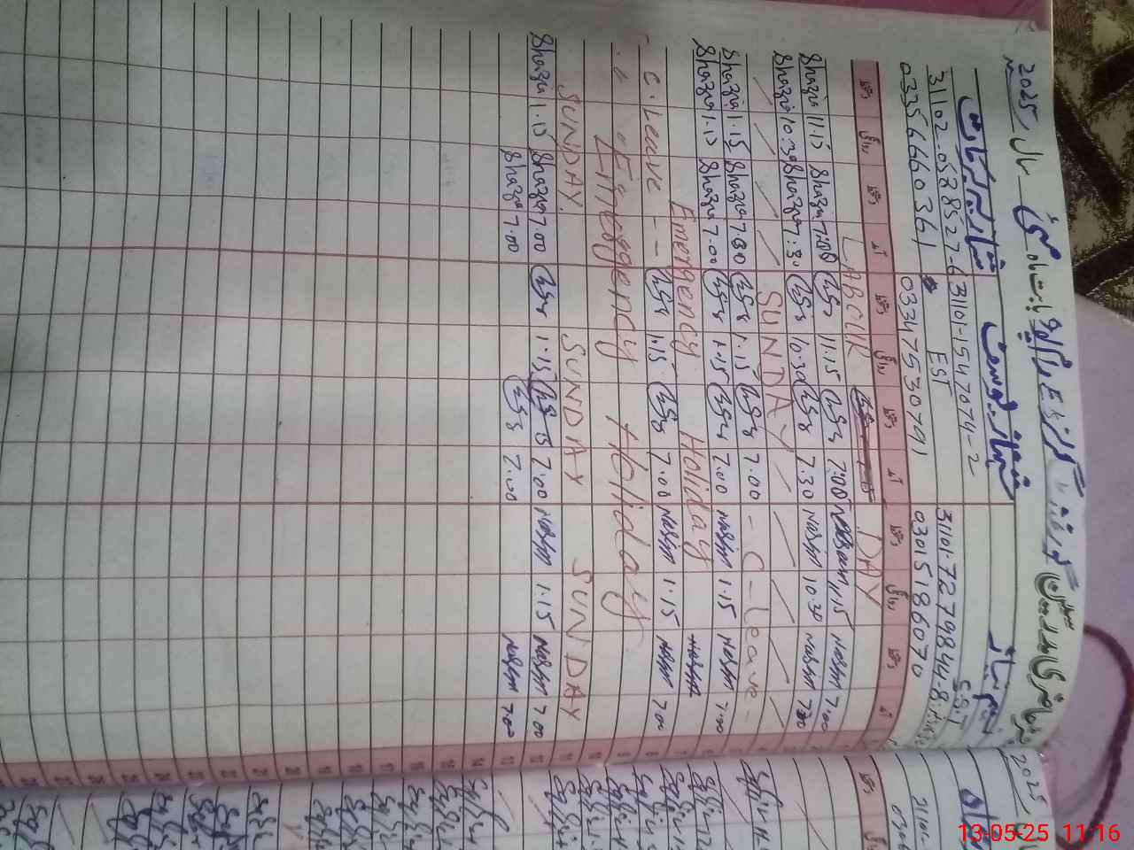 | CNIC | Full Name | Designation | R/C | Absence During Last Calender Month |