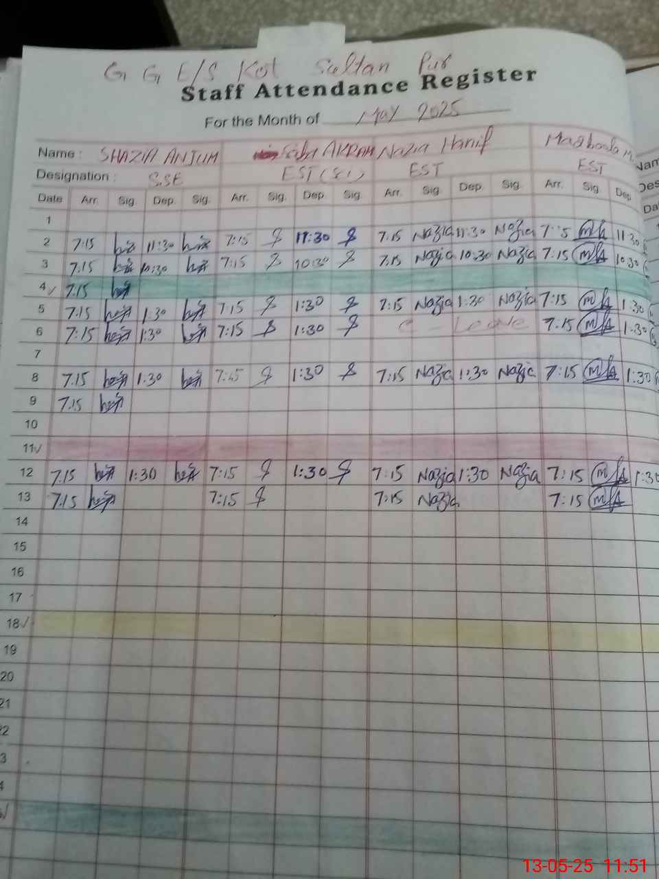 | Name: Sh**** An**** Designation: (School Headmaster's/Headmistress's) SSE(A) Phone/Cell Number: 03**** |