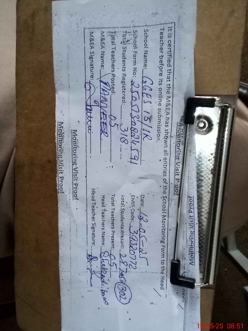 | EMIS Code: 39320771 | Name of School: GGES CHAK NO. 15/1-R | |||
