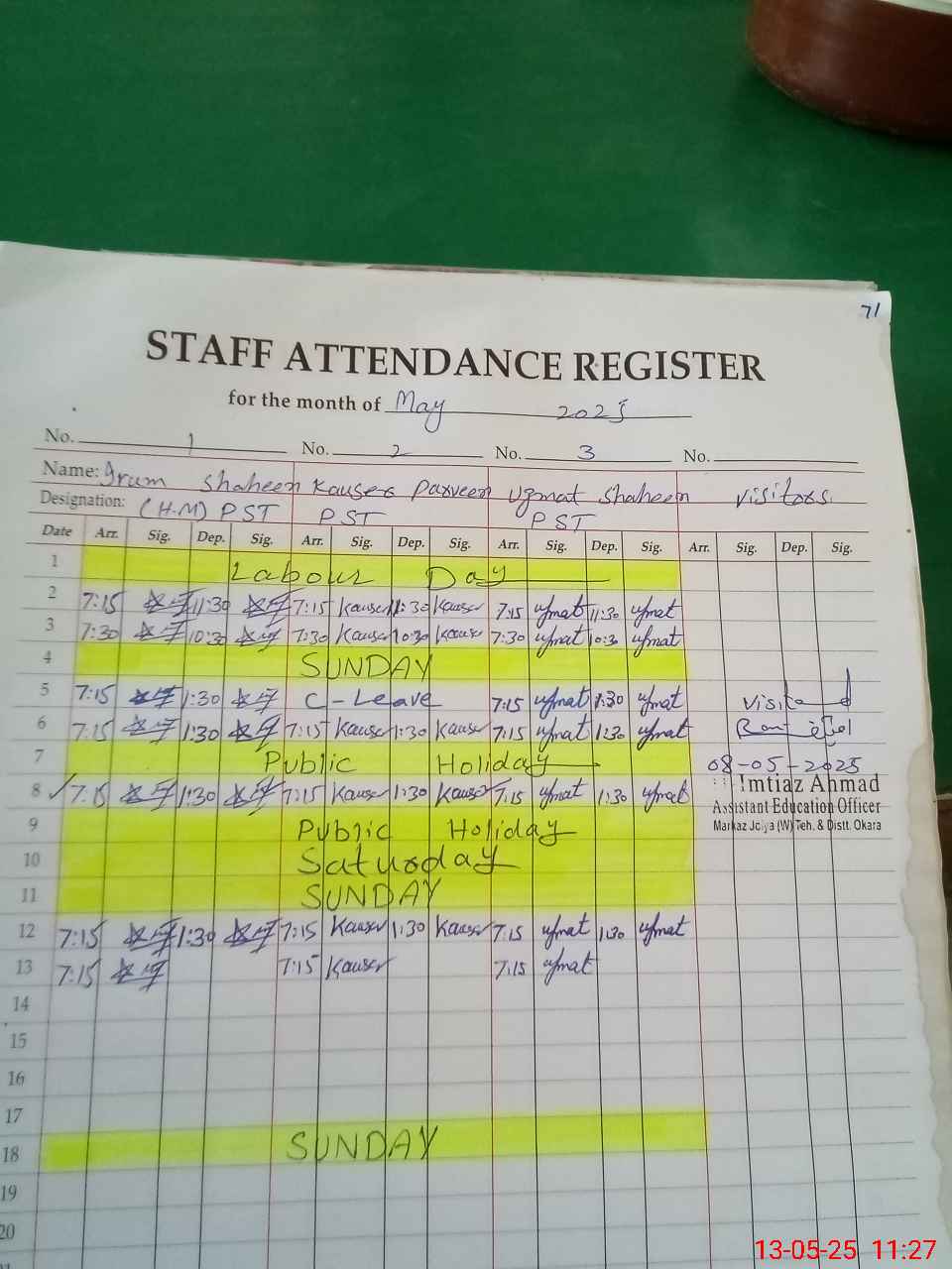 | CNIC | Full Name | Designation | R/C | Absence During Last Calender Month |