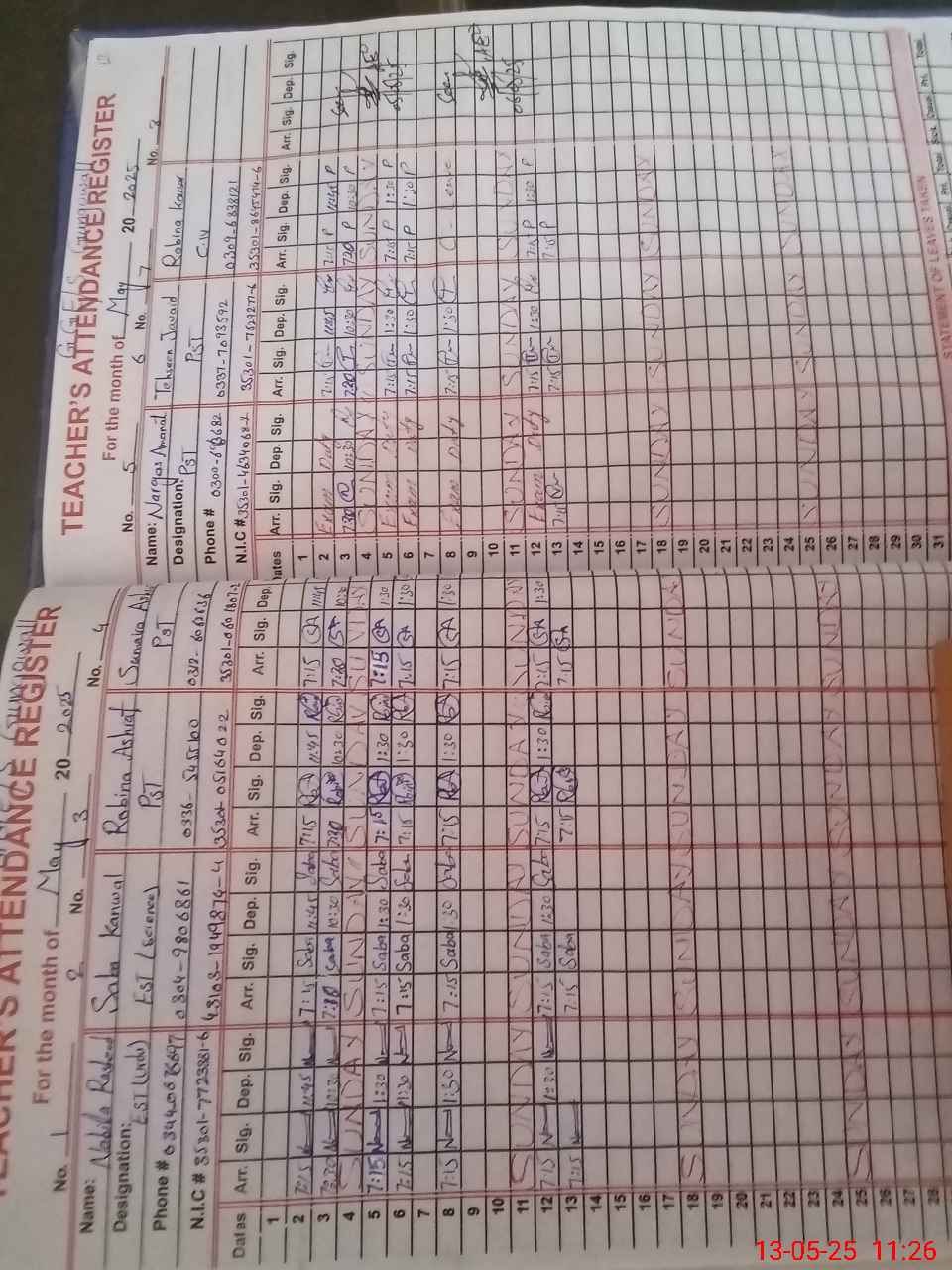 | CNIC | Full Name | Designation | R/C | Absence During Last Calender Month |