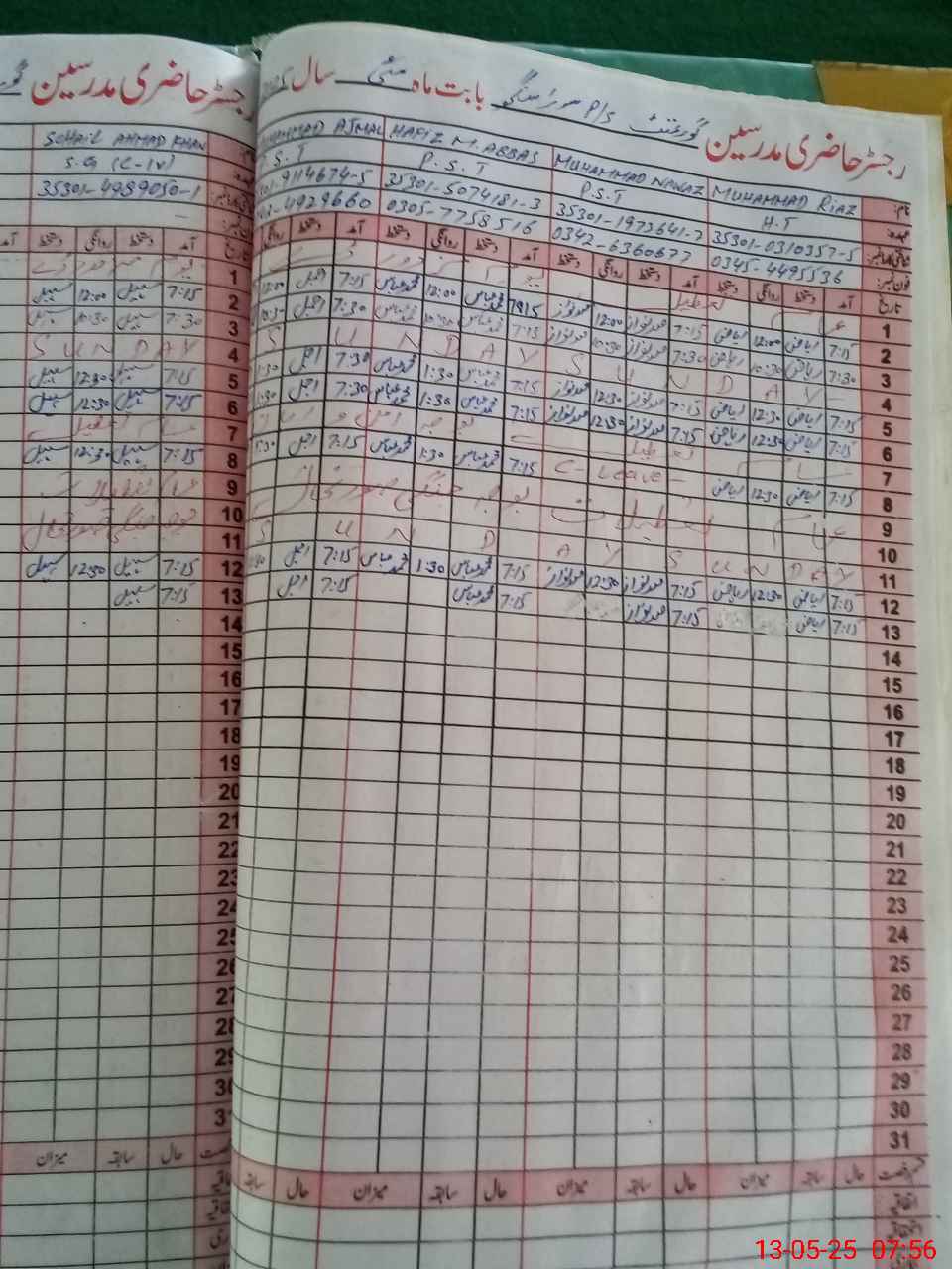 | Name: Mu**** Ri**** Designation: (School Headmaster's/Headmistress's) PST Phone/Cell Number: 03**** |