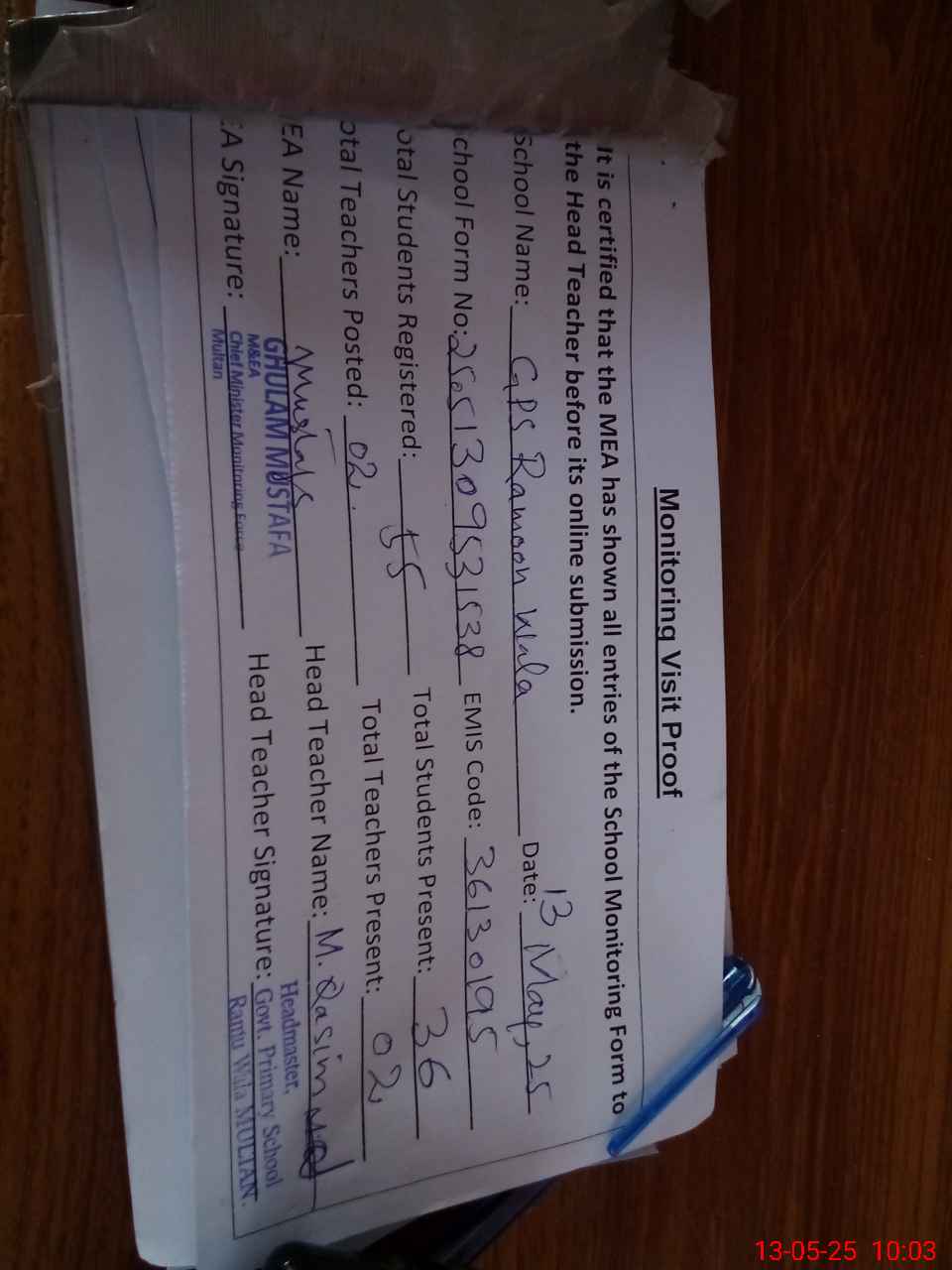 | EMIS Code: 36130195 | Name of School: GPS RAMOON WALA | |||