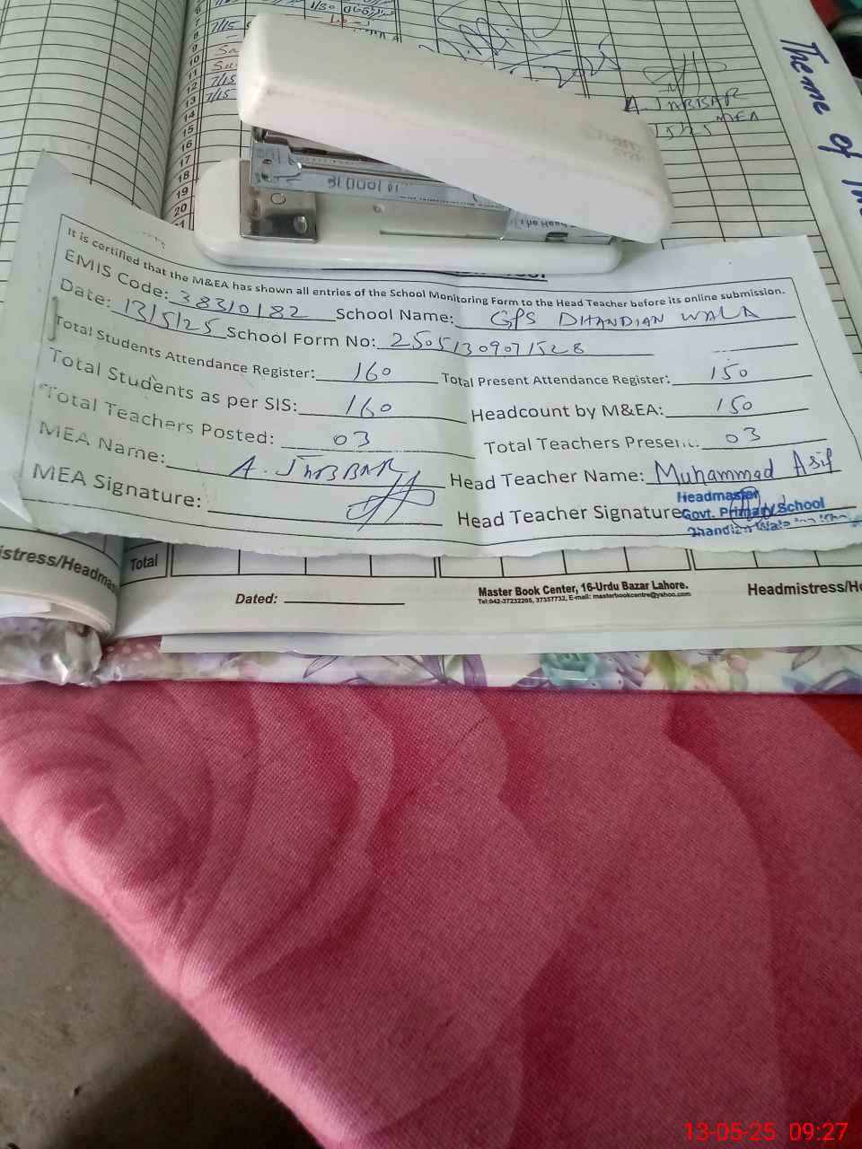 | EMIS Code: 38310182 | Name of School: GPS DHANDIAN WALA | |||