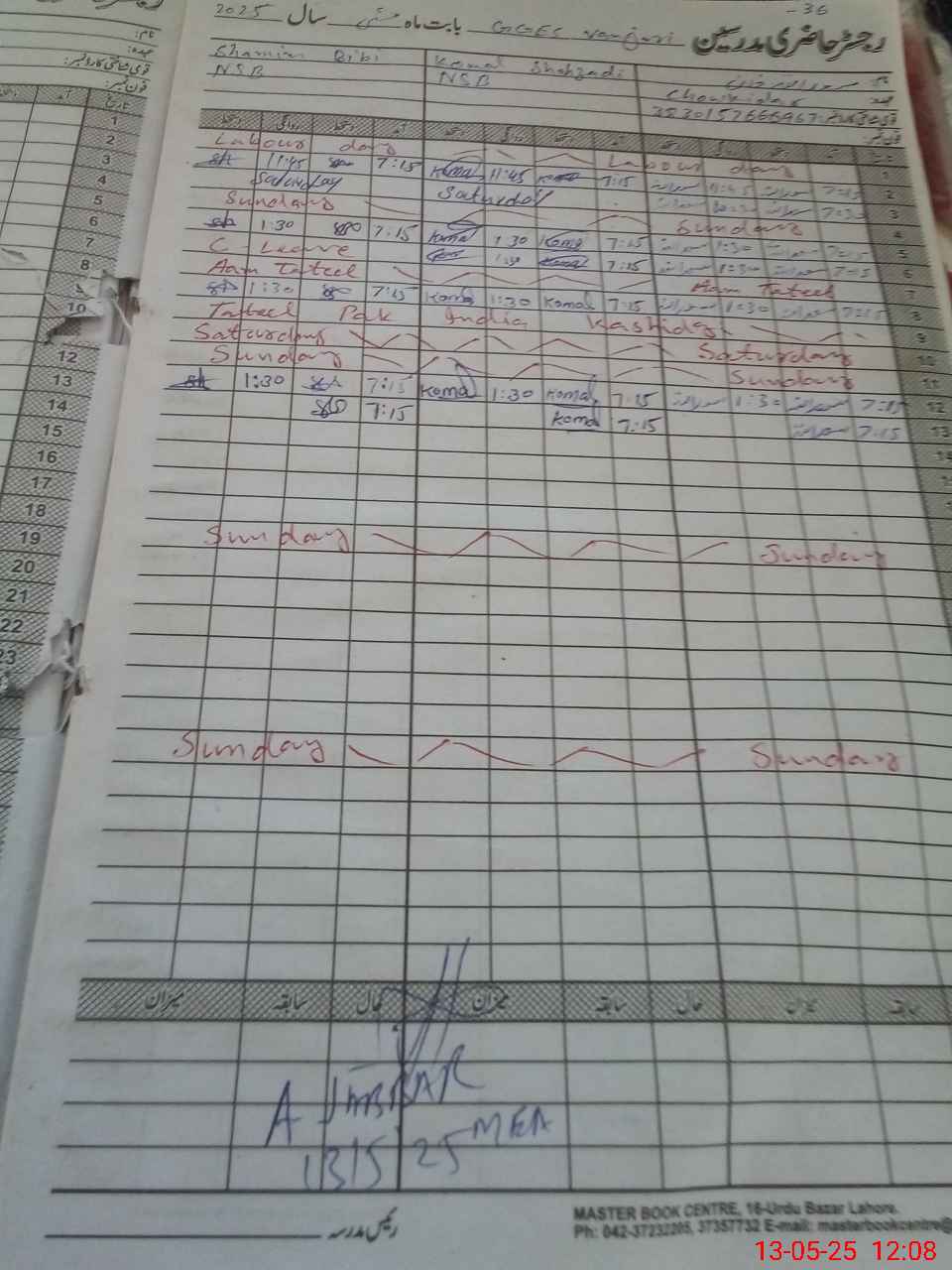 | CNIC | Full Name | Designation | R/C | Absence During Last Calender Month |