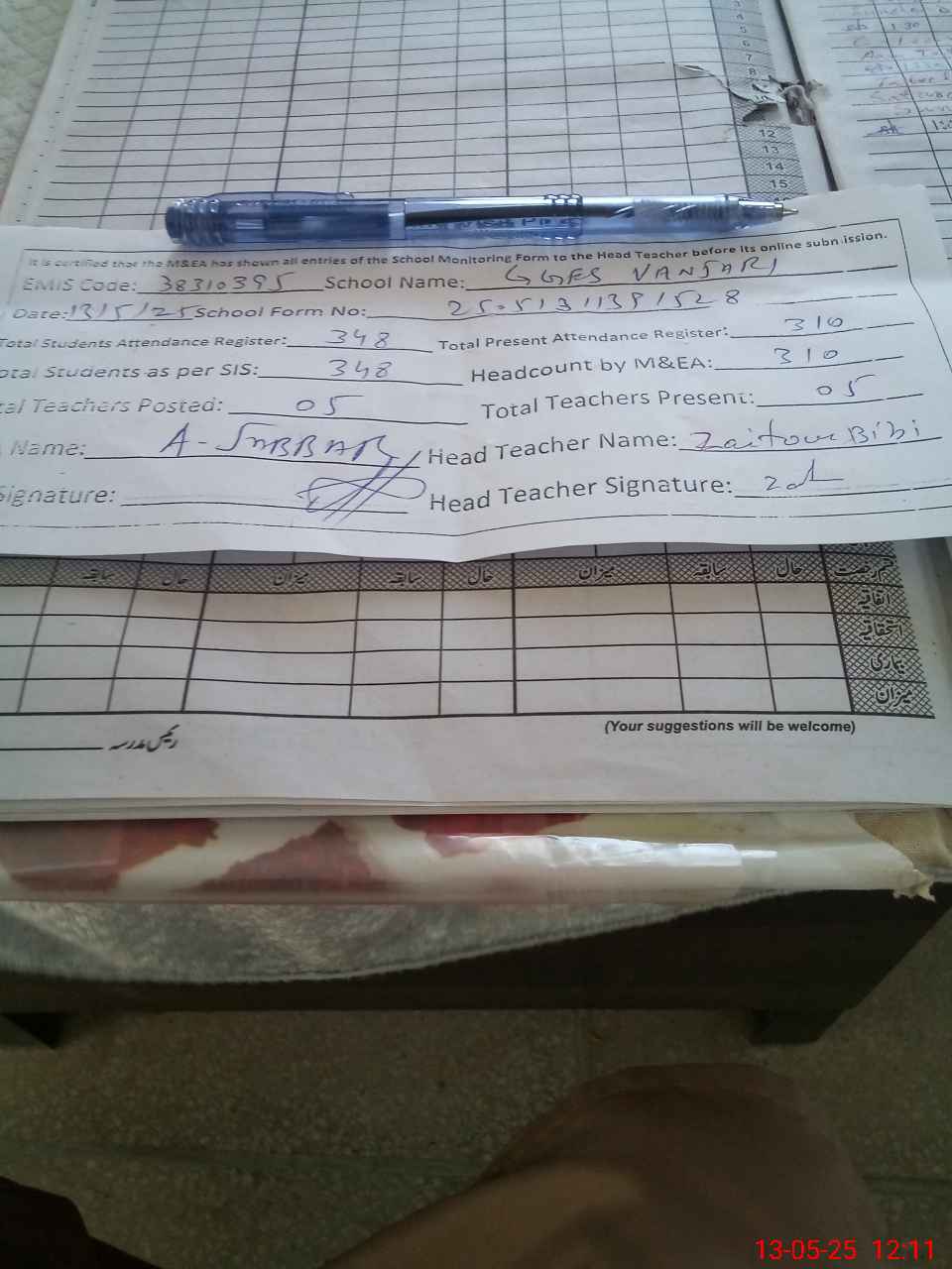 | Attendance Register | Head Teacher | MEA with School | Visit Proof |