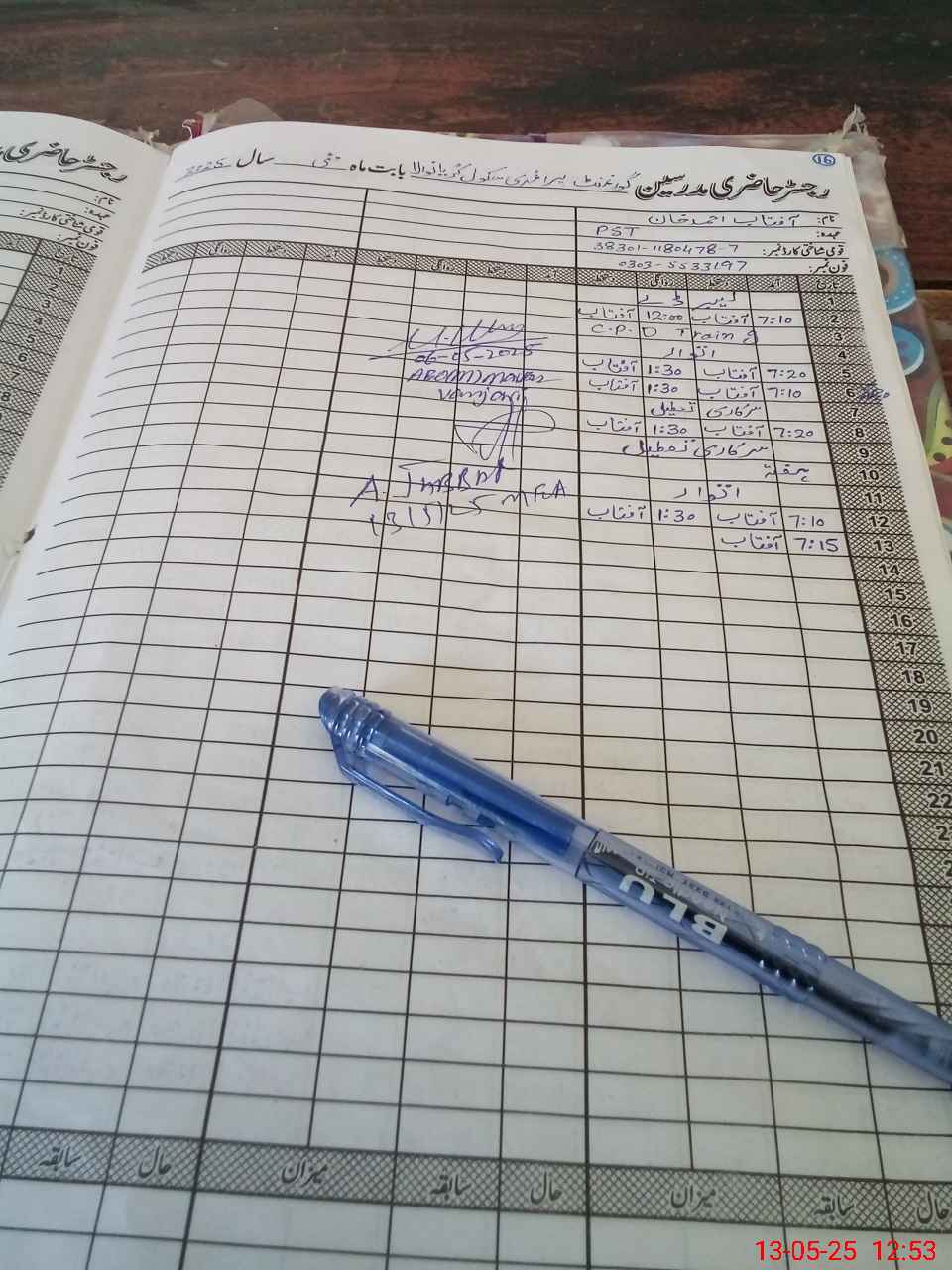 | Name: AF**** AH**** KH**** Designation: (School Headmaster's/Headmistress's) PST Phone/Cell Number: 03**** |