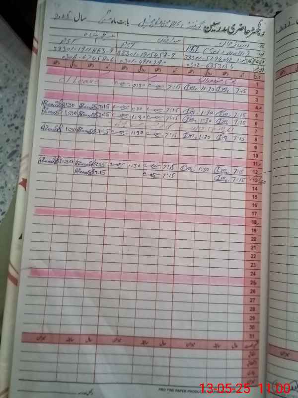 | Name: IM**** KH**** Designation: (School Headmaster's/Headmistress's) PST Phone/Cell Number: 03**** |
