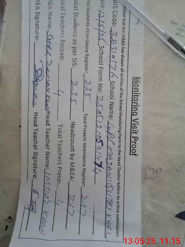 | EMIS Code: 38310176 | Name of School: GPS MAJANI QUTBI KHEL | |||