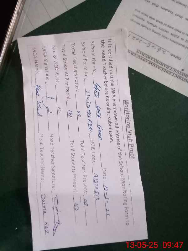 | Attendance Register | Head Teacher | MEA with School | Visit Proof |