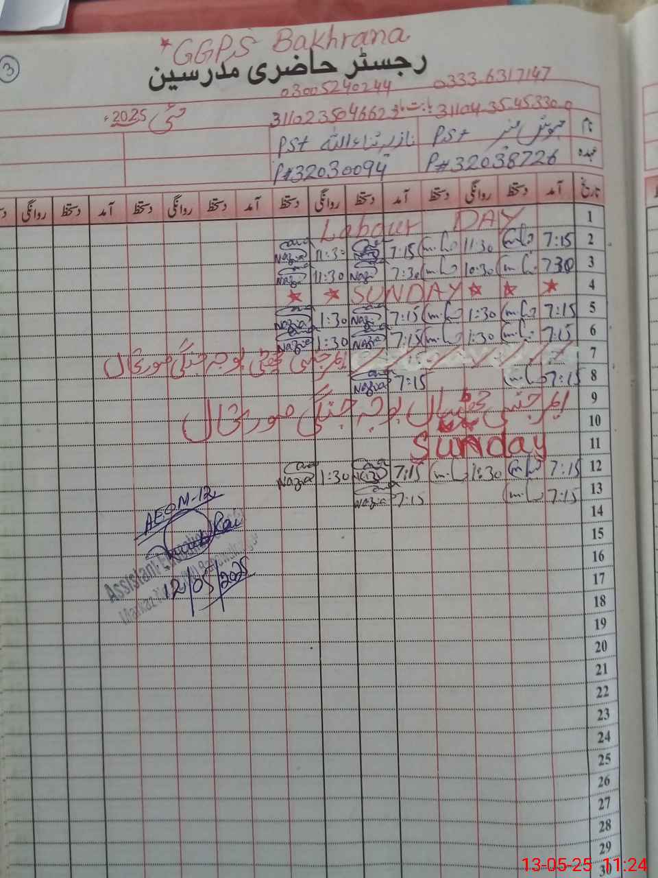 | CNIC | Full Name | Designation | R/C | Absence During Last Calender Month |