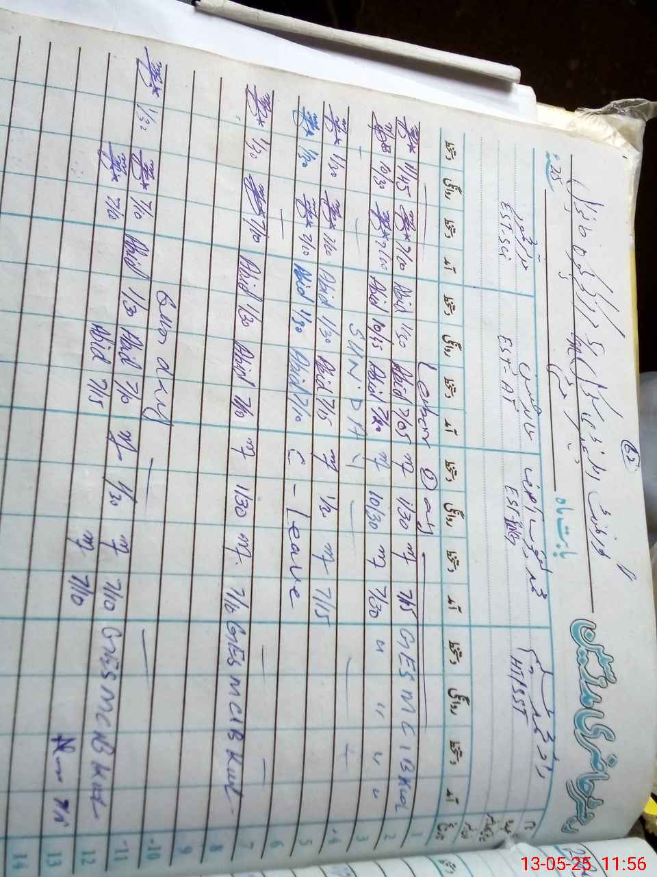 | CNIC | Full Name | Designation | R/C | Absence During Last Calender Month |