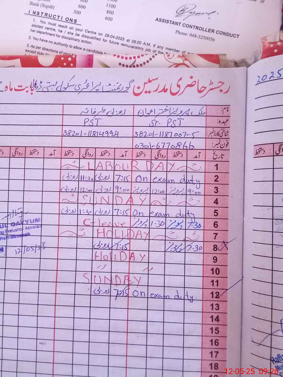 | Name: PE**** AK**** SH**** Designation: (School Headmaster's/Headmistress's) PST Phone/Cell Number: 03**** |