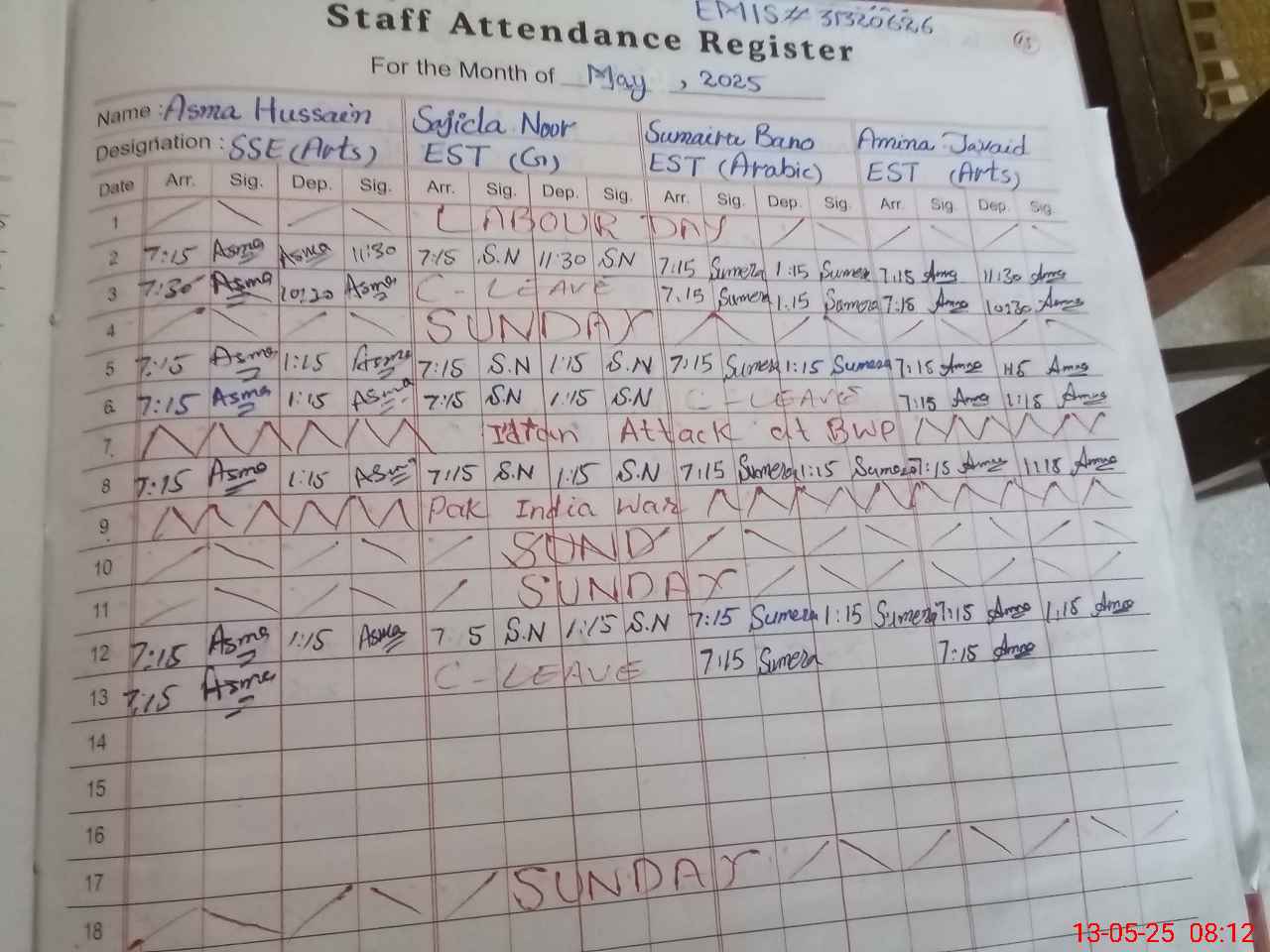 | Remarks (Use Separate Page if Required): Teachers and students attendance not marked on SIS | |||||