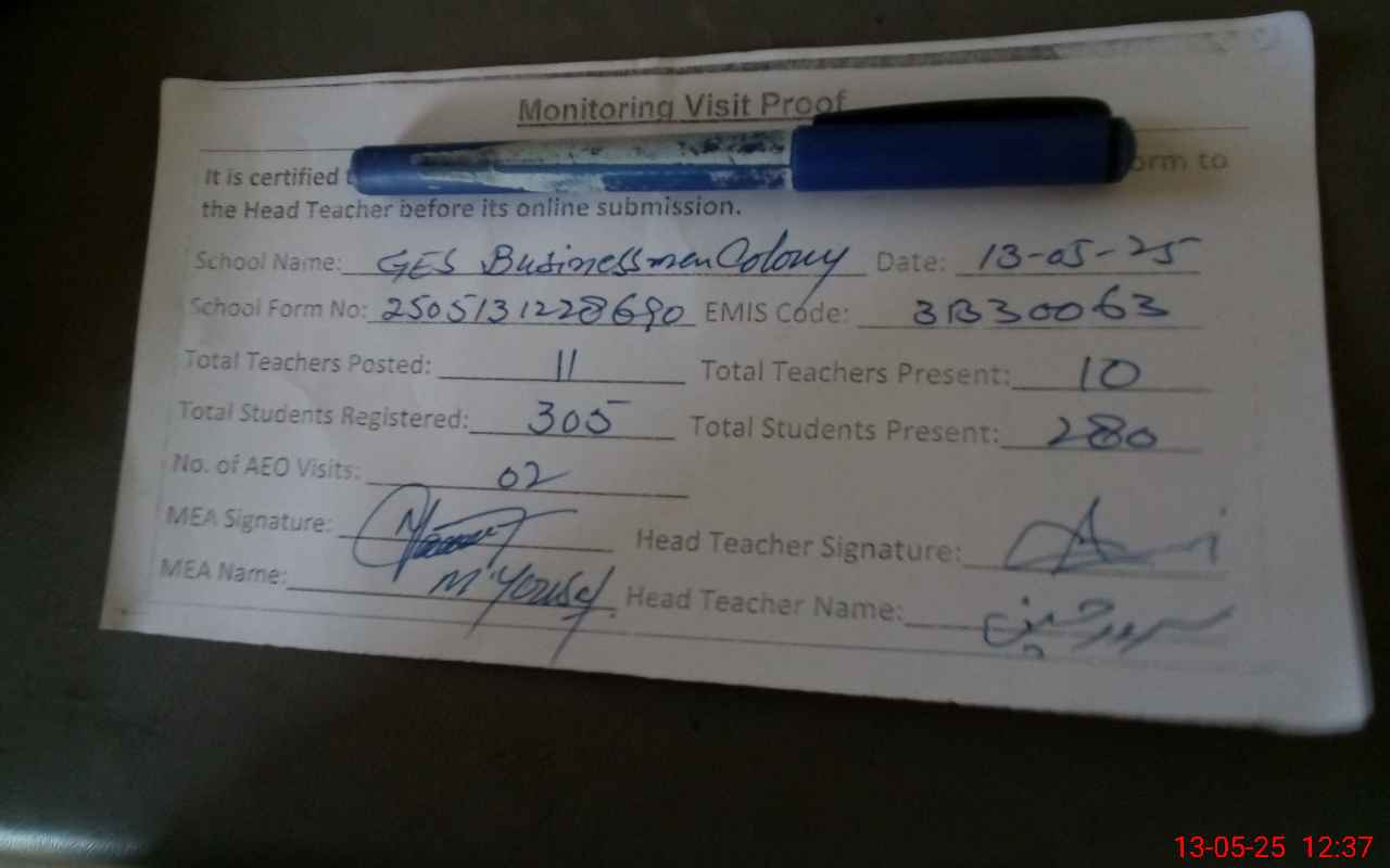 | EMIS Code: 31330063 | Name of School: GES BUSINESS MEN COLONY | |||