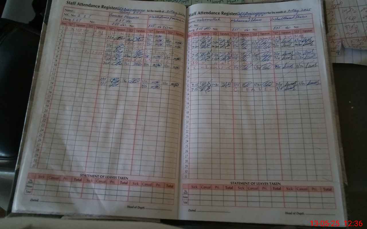 | CNIC | Full Name | Designation | R/C | Absence During Last Calender Month |