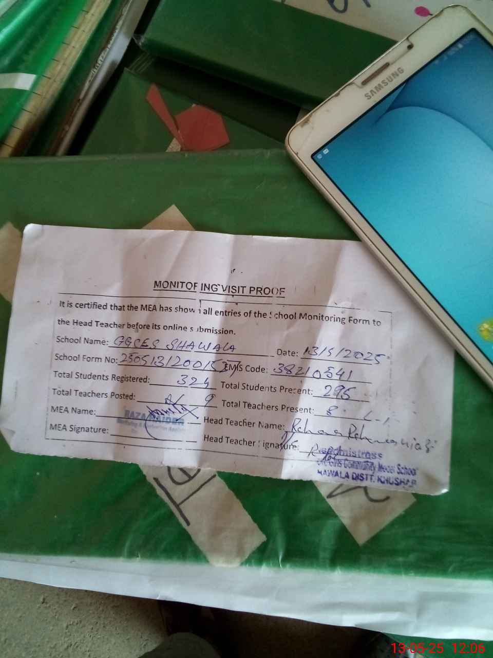| Attendance Register | Head Teacher | MEA with School | Visit Proof |
