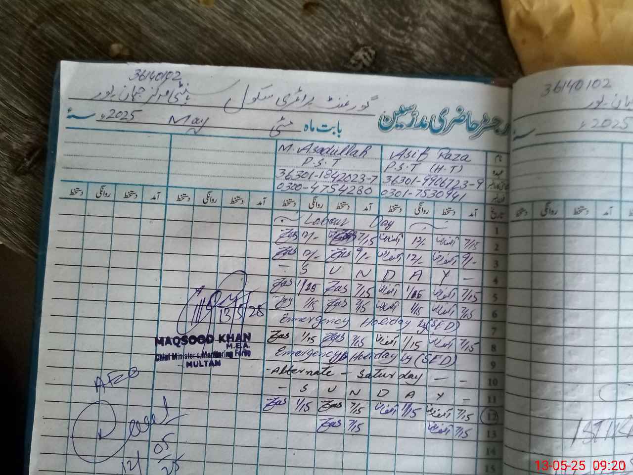 | Name: As**** Ra**** Designation: (School Headmaster's/Headmistress's) PST (Arts) Phone/Cell Number: 03**** |