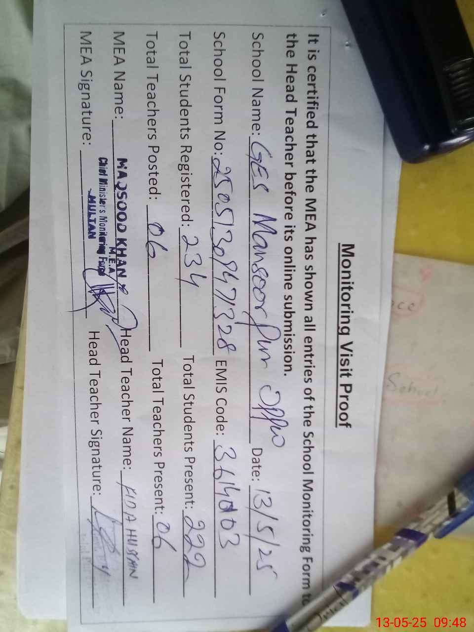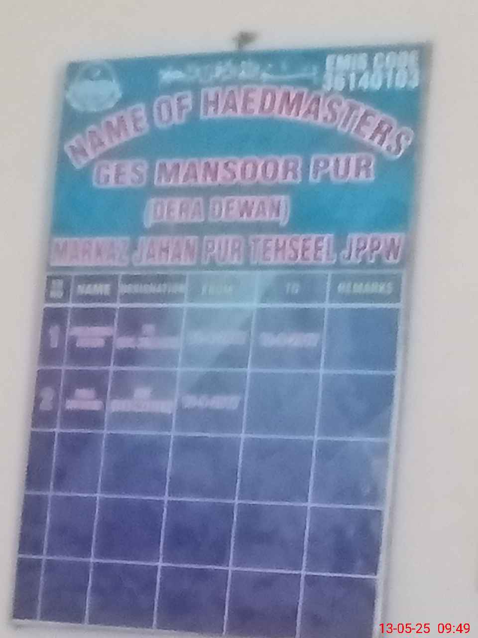 | EMIS Code: 36140103 | Name of School: GES MANSOOR PUR MOUZA MANSOOR PUR TAH. JALALPUR PIRWALA | |||