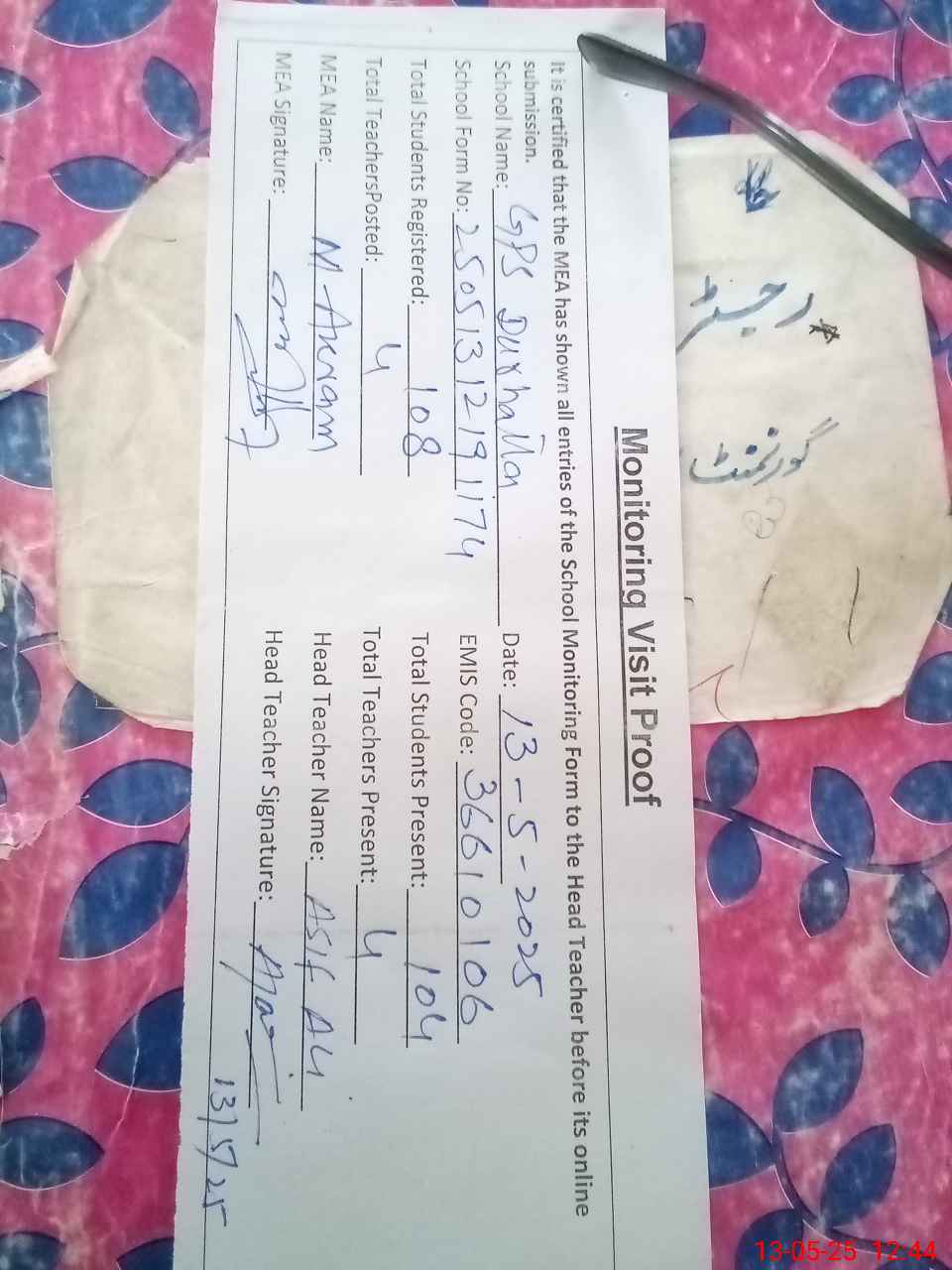 | EMIS Code: 36610106 | Name of School: GPS DURHATTA | |||