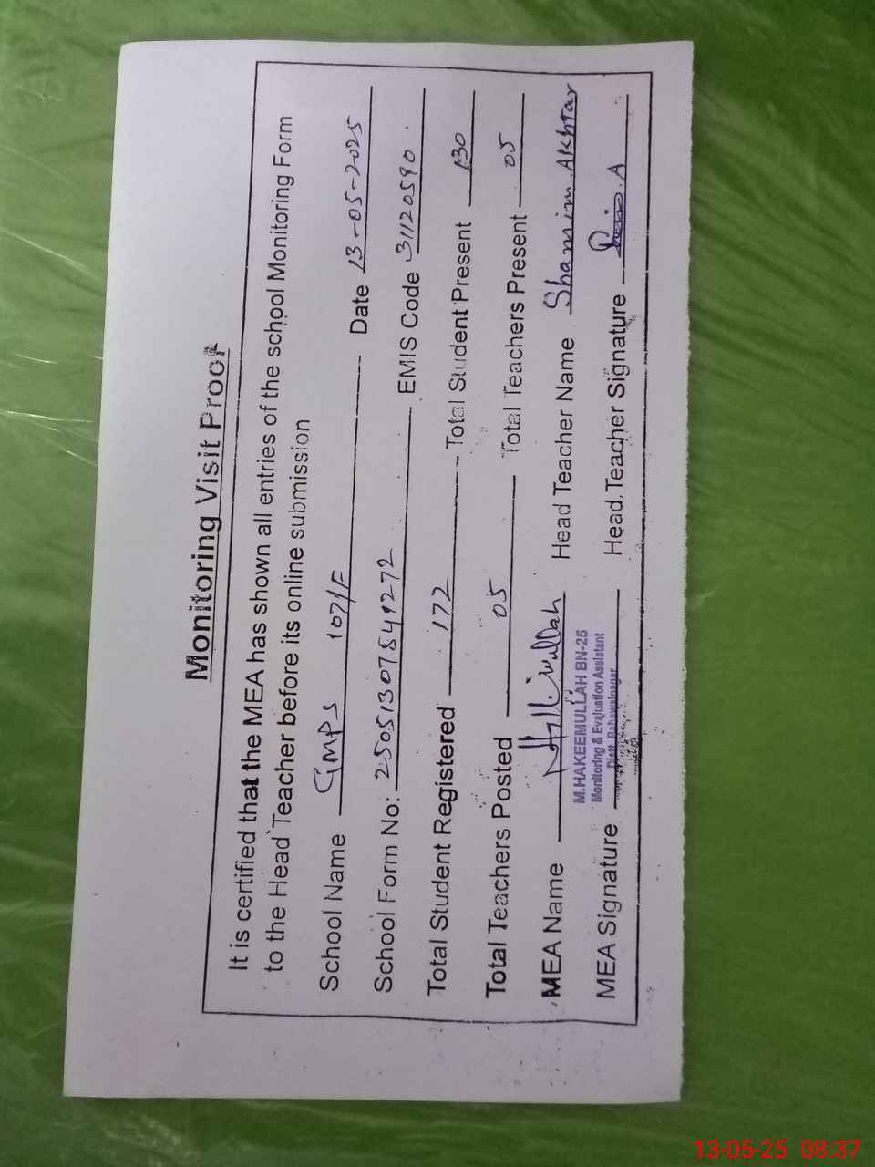 | EMIS Code: 31120590 | Name of School: GMPS CHAK NO. 107/F | |||