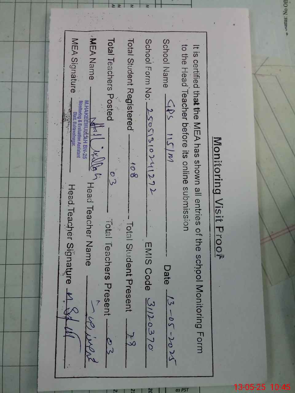 | Monitoring Date: 13-05-2025 | Start Time: 13-05-2025 10:23 AM | End Time: 13-05-2025 10:45 AM | Name of MEA: Mu**** ha**** ul**** BN25 | |