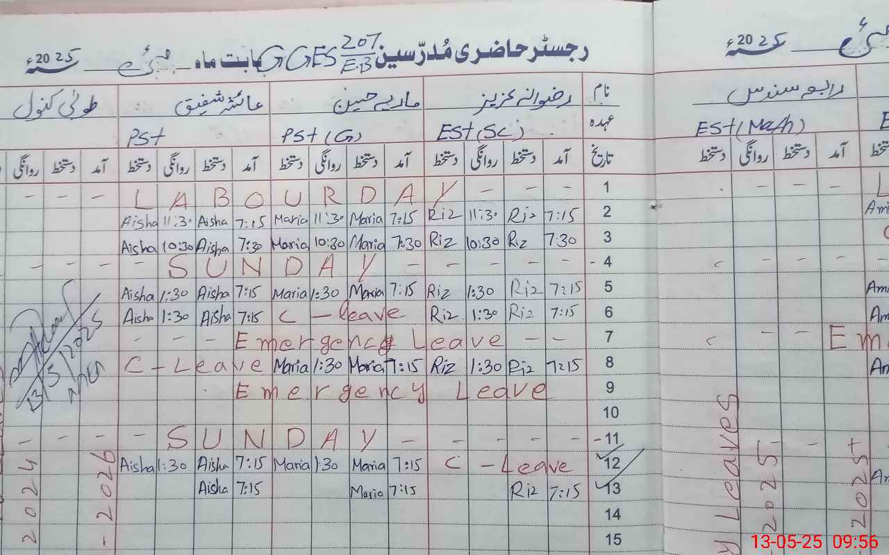 | CNIC | Full Name | Designation | R/C | Absence During Last Calender Month |