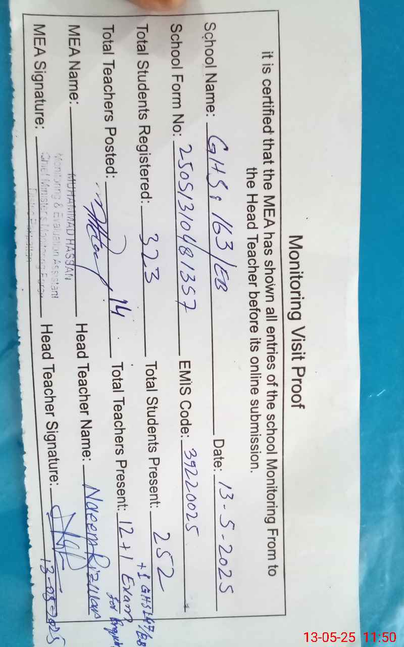 | EMIS Code: 39220025 | Name of School: GHS 163/EB | |||