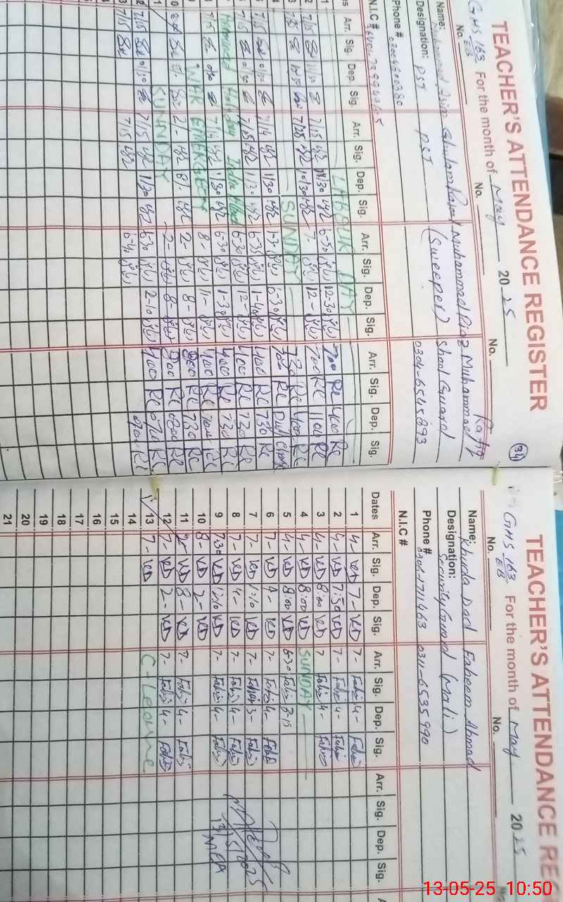 | CNIC | Full Name | Designation | R/C | Absence During Last Calender Month |