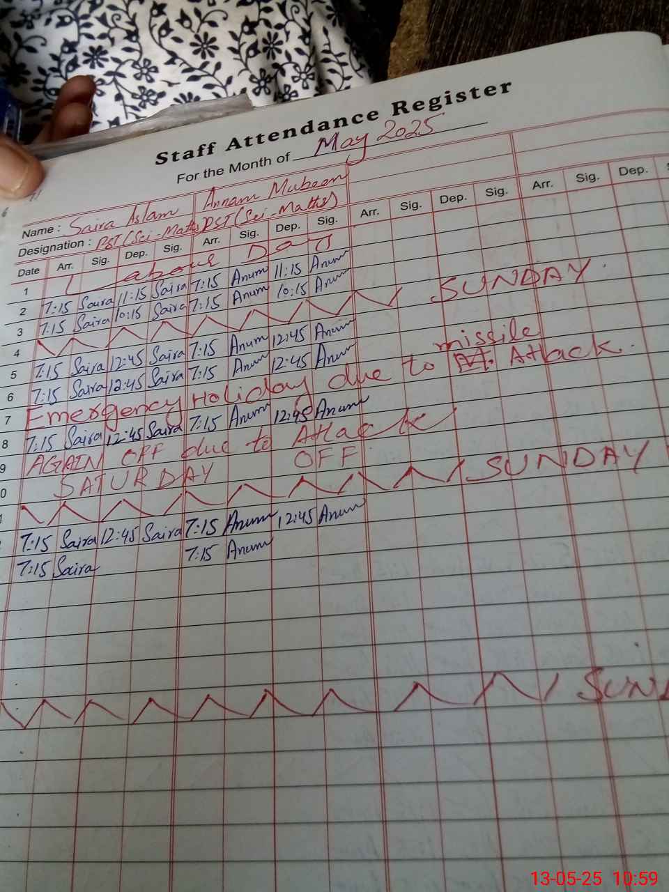 | Remarks (Use Separate Page if Required): Teachers and students attendance not marked on SIS | |||||