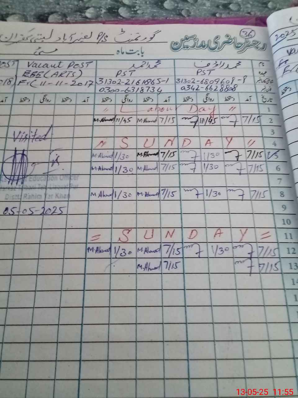| Name: MU**** RA**** Designation: (School Headmaster's/Headmistress's) PST Phone/Cell Number: 03**** |