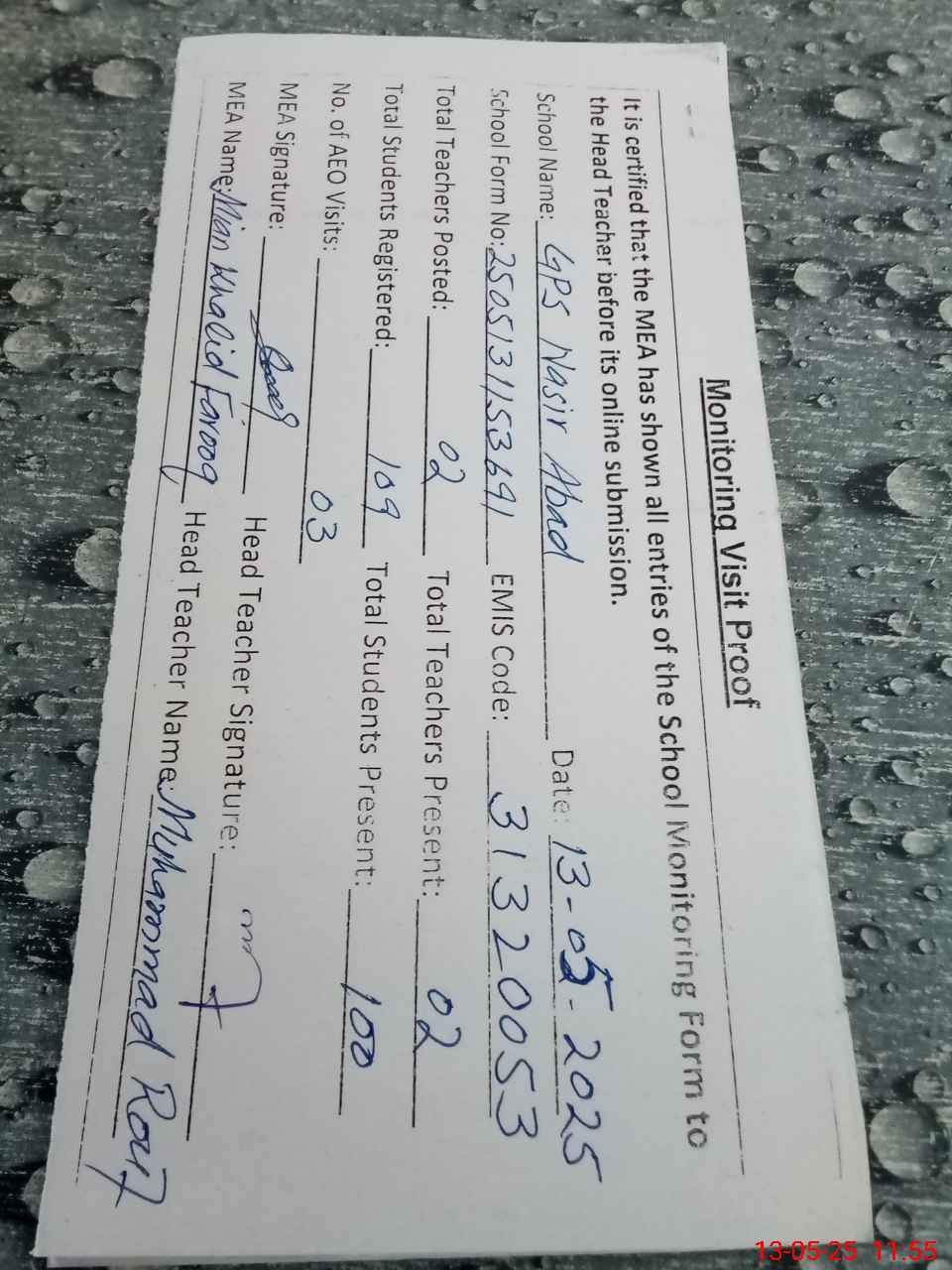 | EMIS Code: 31320053 | Name of School: GPS NASIR ABAD BASTI KHATRAN | |||