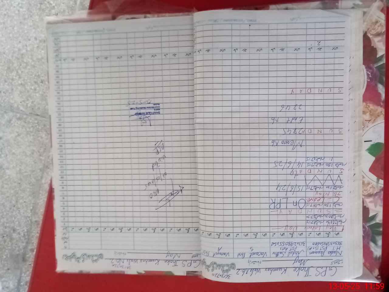 | CNIC | Full Name | Designation | R/C | Absence during last cal. month |