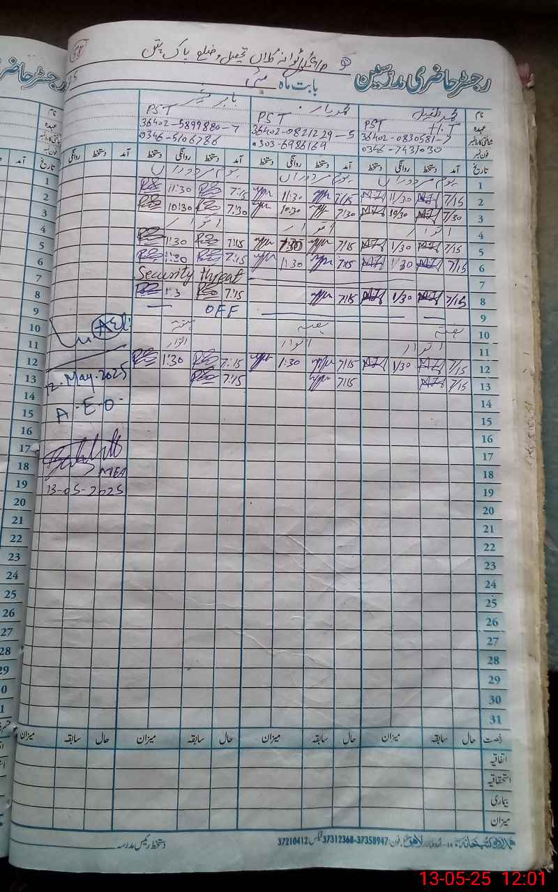 | Name: MTu**** Designation: (School Headmaster's/Headmistress's) PST Phone/Cell Number: 03**** |