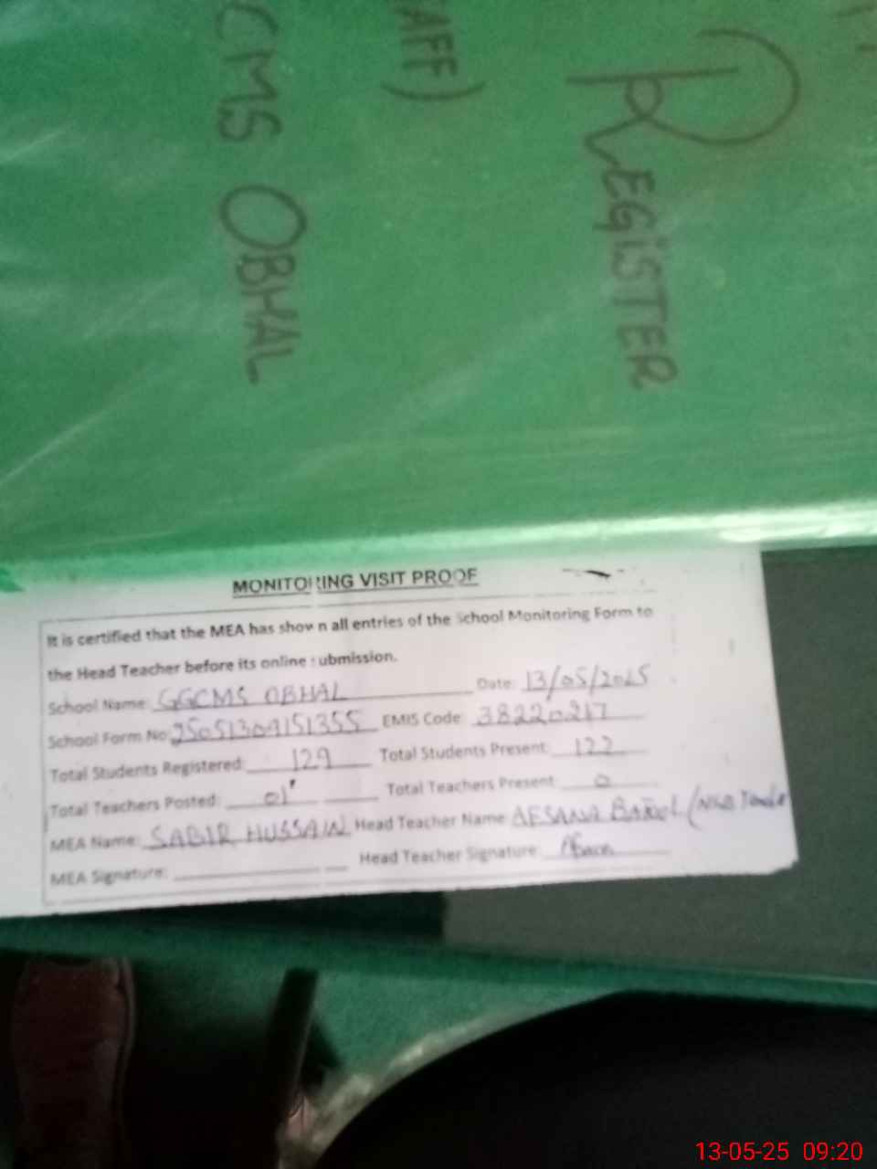| EMIS Code: 38220217 | Name of School: GGCMS OBHAL | |||