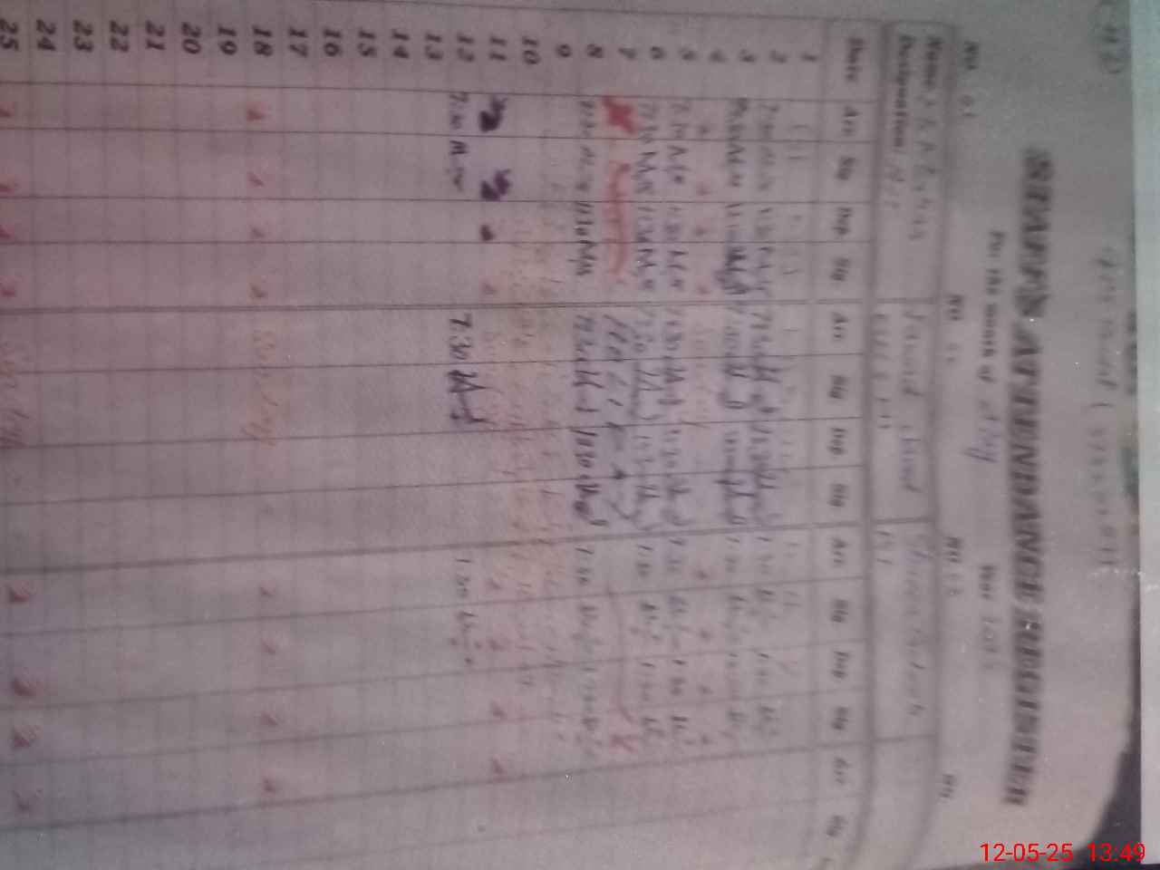 | CNIC | Full Name | Designation | R/C | Absence During Last Calender Month |