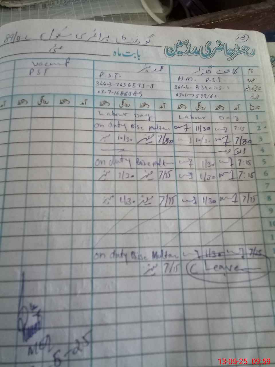 | Name: KA**** GU**** Designation: (School Headmaster's/Headmistress's) PST Phone/Cell Number: 03**** |