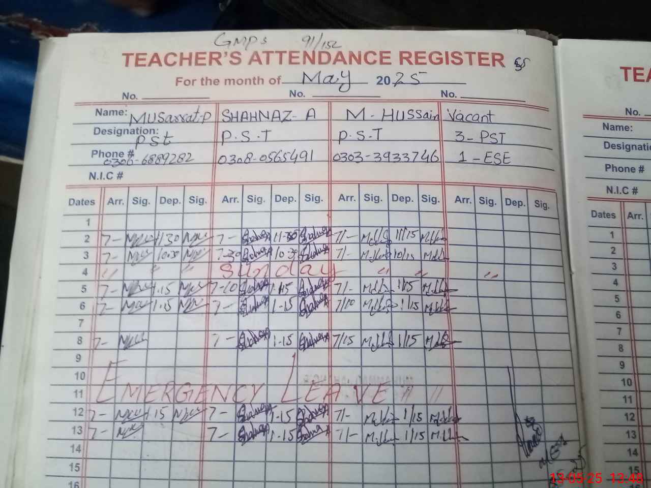 | Name: MU**** PA**** Designation: (School Headmaster's/Headmistress's) PST Phone/Cell Number: 03**** |