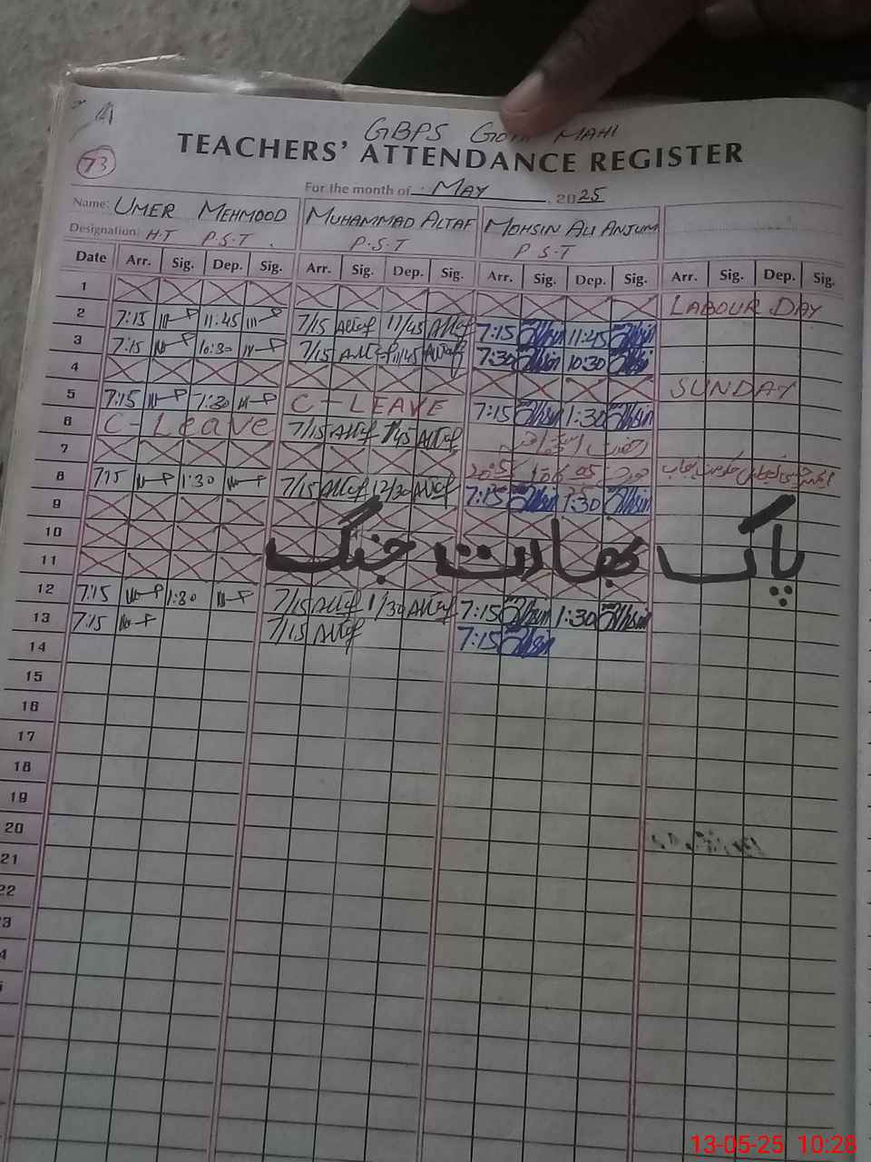 | Name: UM**** MA**** Designation: (School Headmaster's/Headmistress's) PST Phone/Cell Number: 03**** |