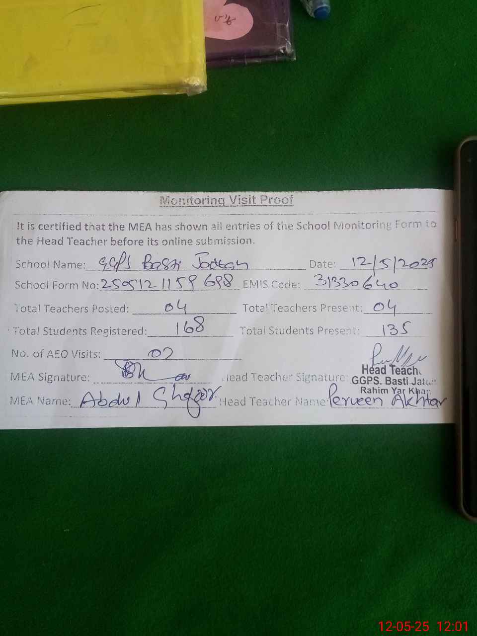 | EMIS Code: 31330640 | Name of School: GGPS BASTI JATTAN R.Y.KHAN (Basti Burra) | |||