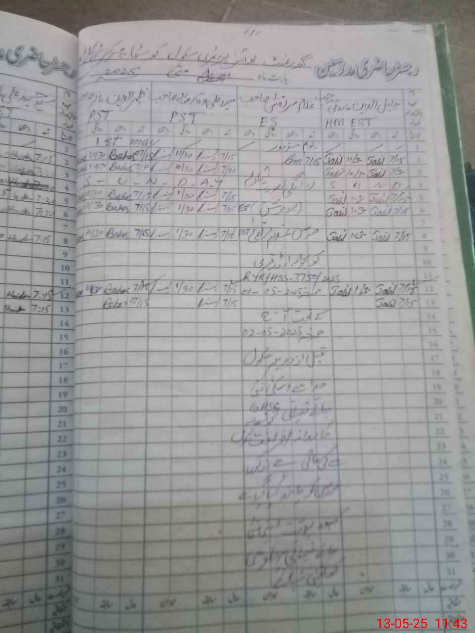 | CNIC | Full Name | Designation | R/C | Absence During Last Calender Month |