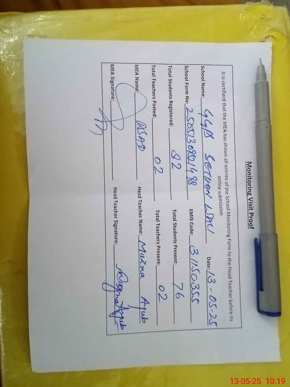 | Certified that this School was Inspected by the Undersigned MEA/DMO Today and the Information Stated Above is as Per Record. | |||||