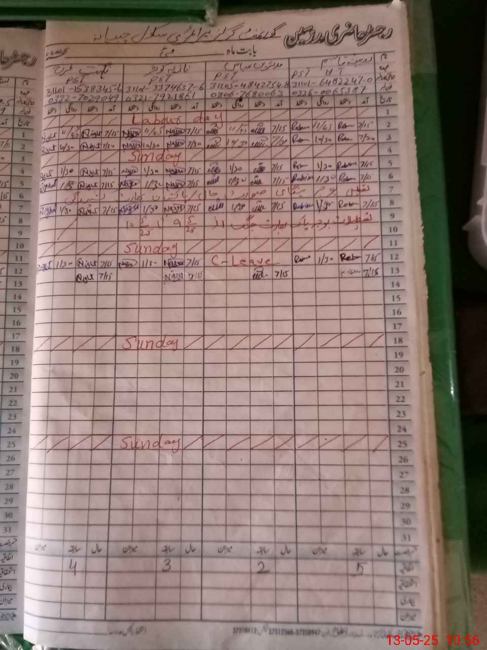 | CNIC | Full Name | Designation | R/C | Absence During Last Calender Month |