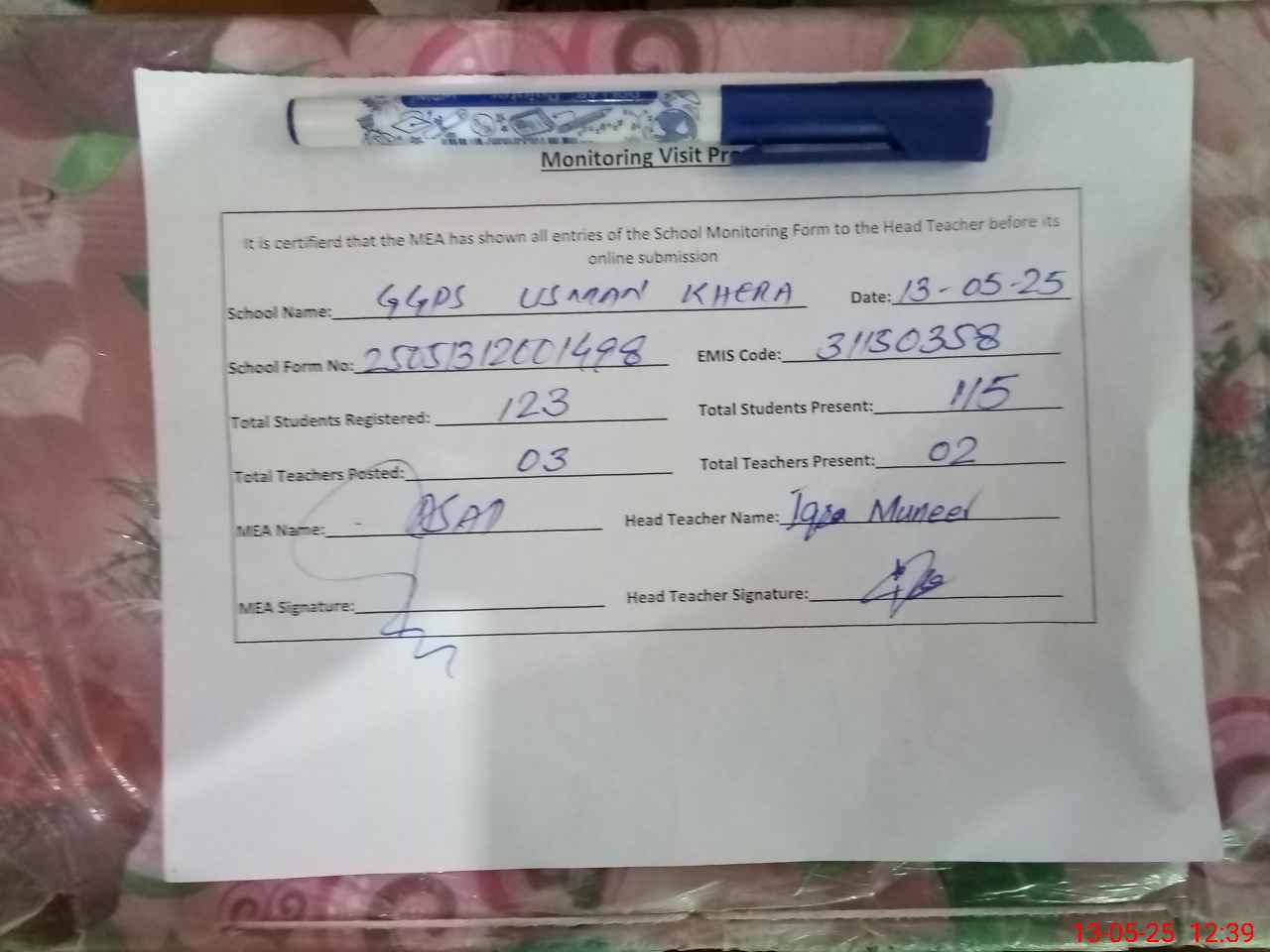 | EMIS Code: 31150358 | Name of School: GGPS USMAN KHARA | |||